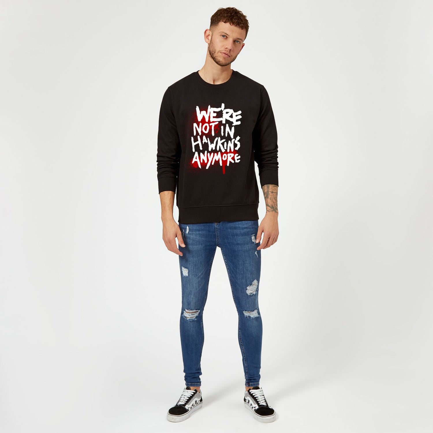 Not in Hawkins? Doesn’t matter — this Official Stranger Things “Not In Hawkins” Sweatshirt makes sure your style is still *seriously iconic*. Rocking bold graphics on classic black fabric, this isn’t just another layer — it’s your go‑to statement piece. Comfortable, effortlessly cool and perfect for fans who want everyday wear with a Hawkins‑level attitude.