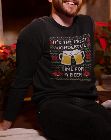 Time For A Christmas Beer Unisex Sweatshirt - Black